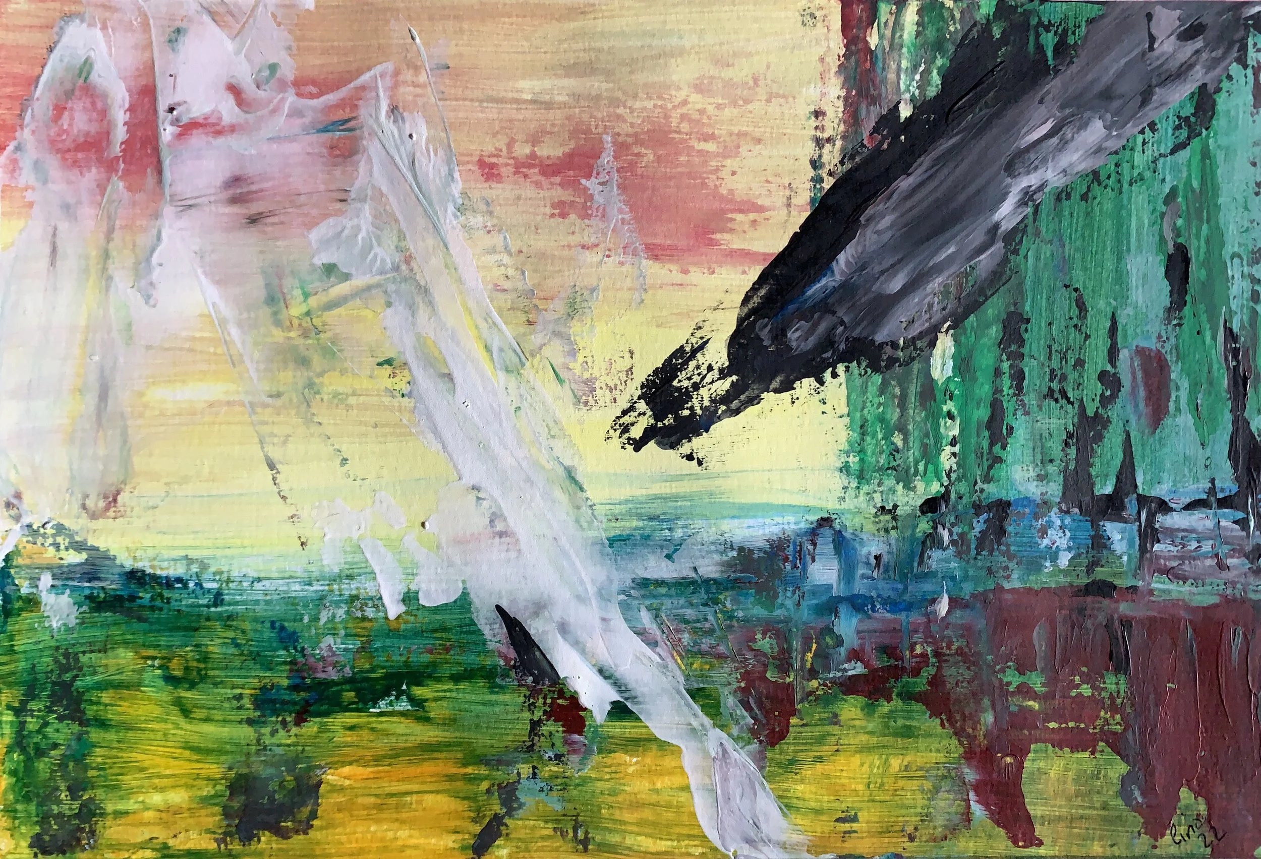 Acrylic on paper - mounted and framed